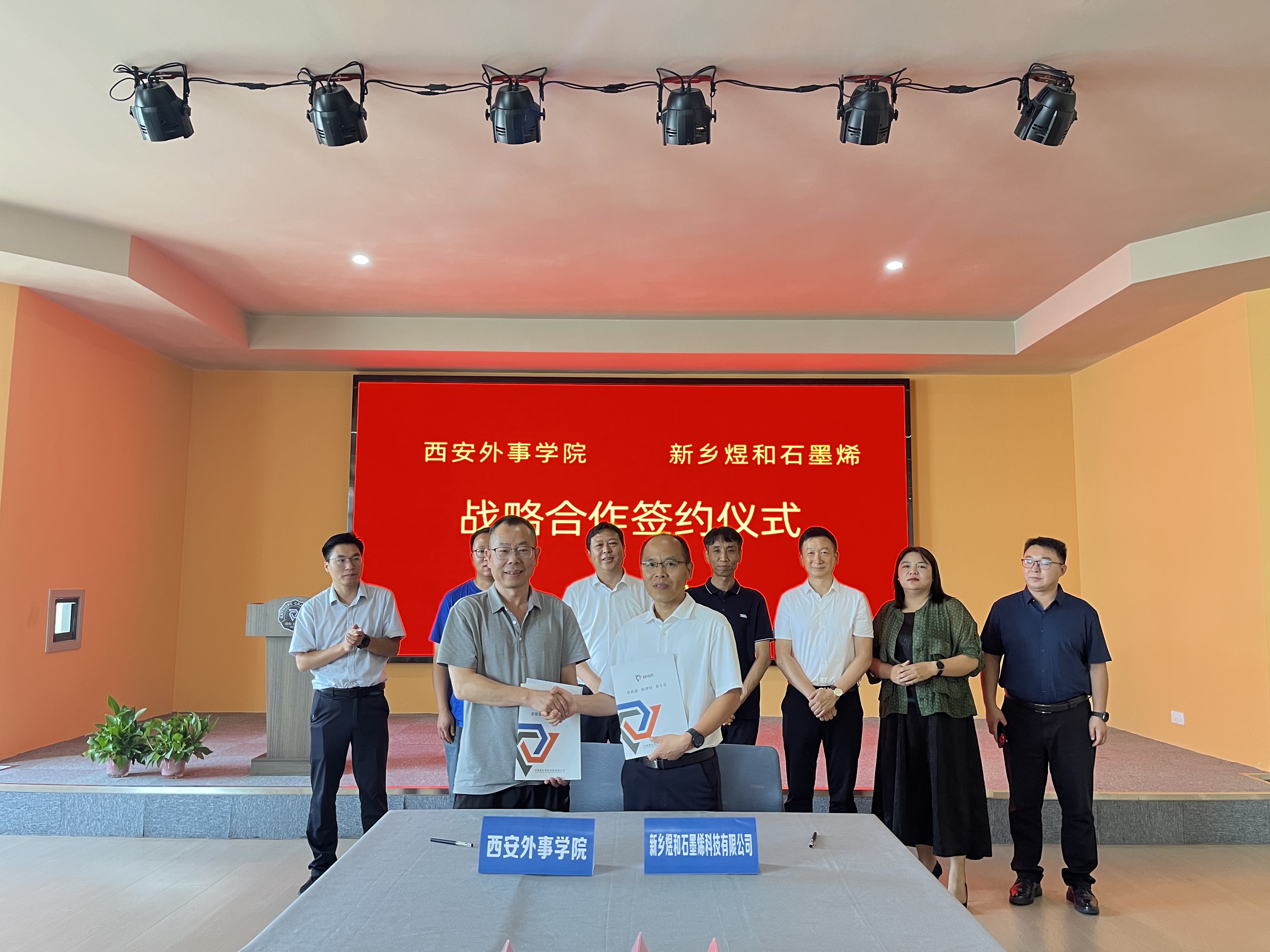 7 月 18 日,煜和石墨及石墨烯科技馆迎来一场意义非凡的合作签约 —— 在凤泉区委常委、组织部长毛长征,区政府副区长耿建伟等领导的见证下,新乡煜和石墨烯科技有限公司与西安外事学院陕西高校青年创新中心正式达成合作。这不仅是校企协同创新的重要一步,更将为煜和新材料产业发展注入全新动能。